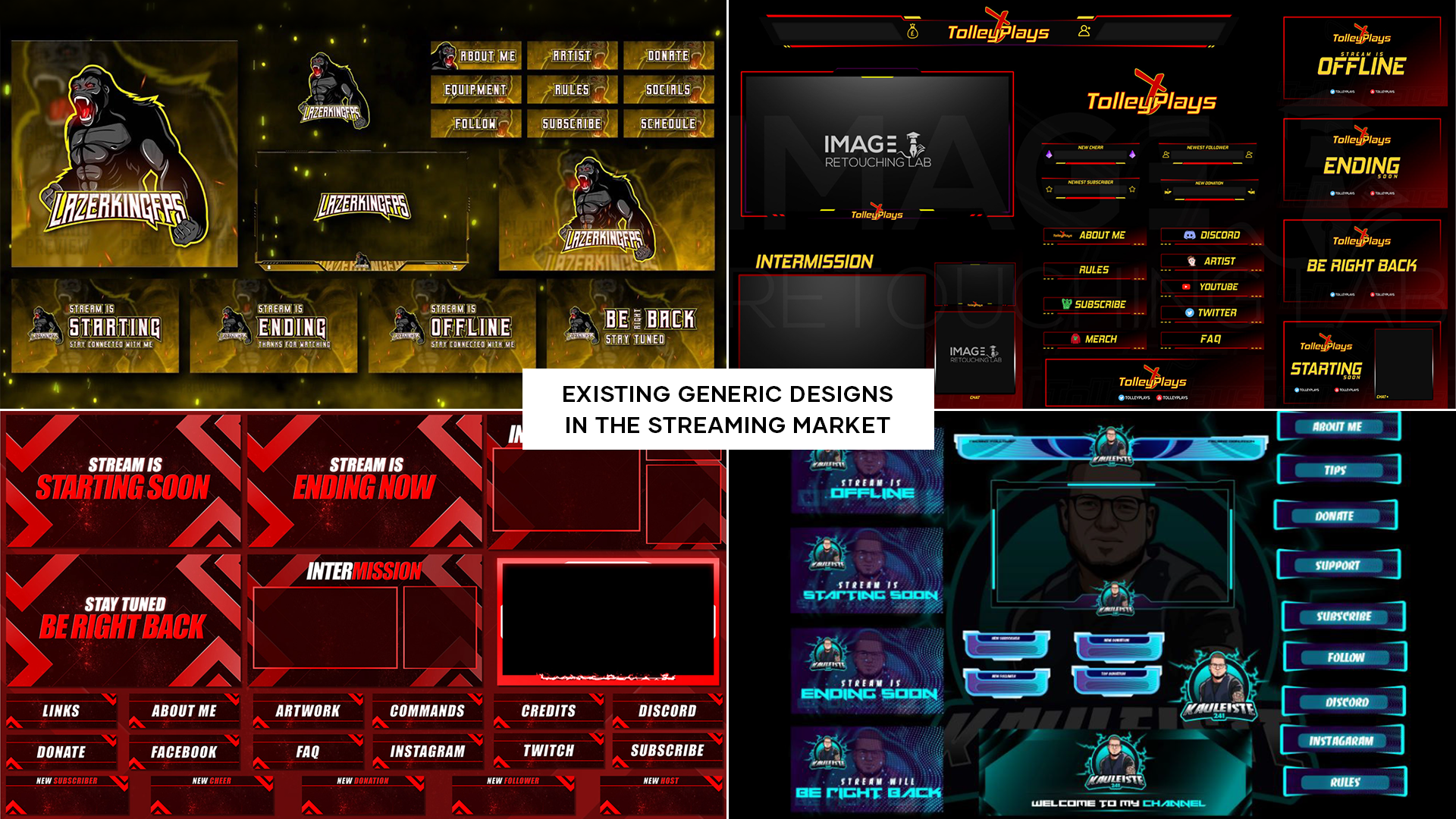 At that time, streamers were unaware of the potential impact that personalized, strategic design could have on their success. For this reason, most of the existing market for streaming assets consisted of low-effort, generic designs that lacked depth or brand strategy.